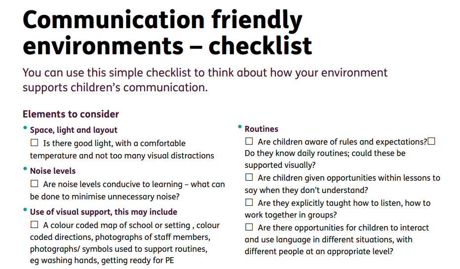A setting self-audit tool to help early years settings develop a setting-wide approach to supporting communication skills